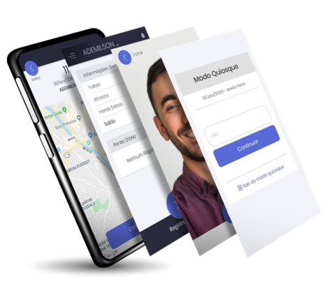 O Aplicativo permite que o funcionário marque o ponto e o gestor faça o controle da jornada, tanto para Android quanto IOS.