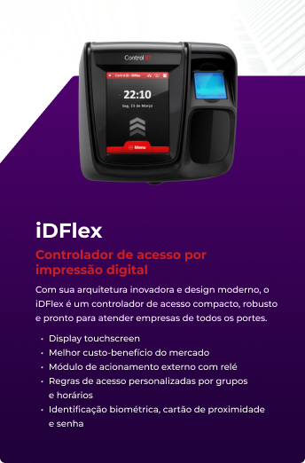 Com sua arquitetura inovadora e design moderno, o iDFlex é um controlador de acesso compacto, robusto e pronto para atender empresas de todos os portes.