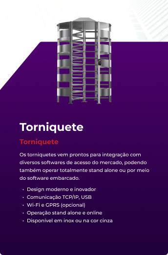 Os torniquetes vem prontos para integração com diversos softwares de acesso do mercado, podendo também operar totalmente stand alone ou por meio do software embarcado.